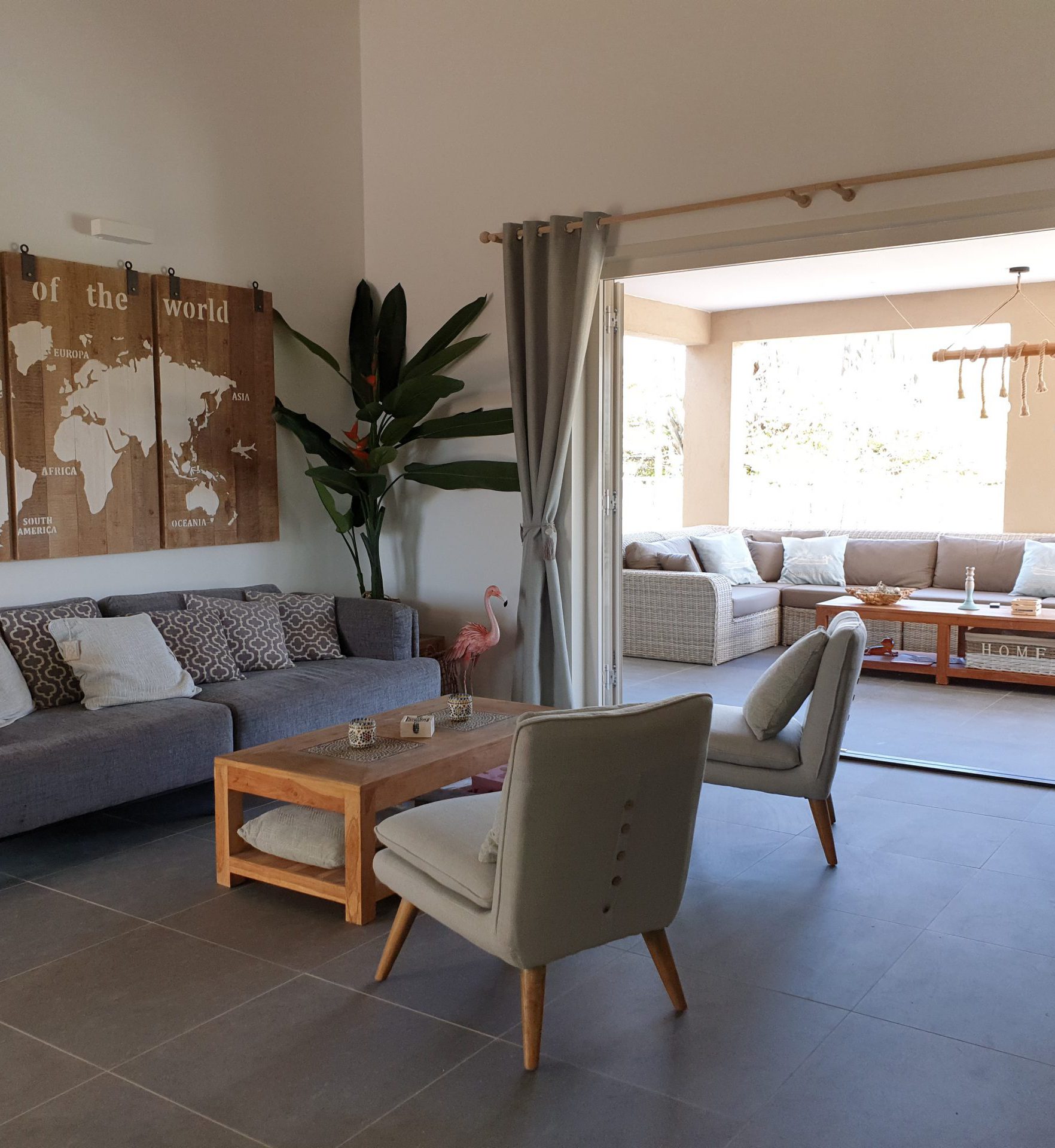 Het huis beschikt over een ruime woonkamer, een voorporch met grote eettafel en BBQ. Op de achterporch een ruime lounge. Er is een afsluitbare ruimte en spoelbak voor duikspullen e.d. aanwezig.